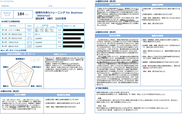 - 客観的に読解力や作成力などの論理的文章力を数値化します。